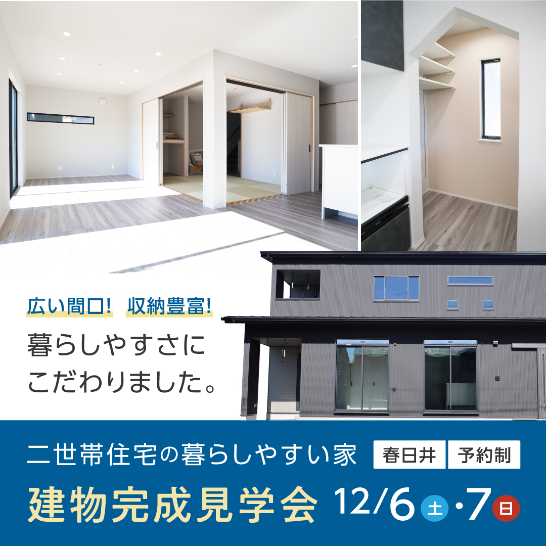 12月6日(土)・7日(日) 春日井市にて「お客様宅の完成現場見学会」を開催いたします。
