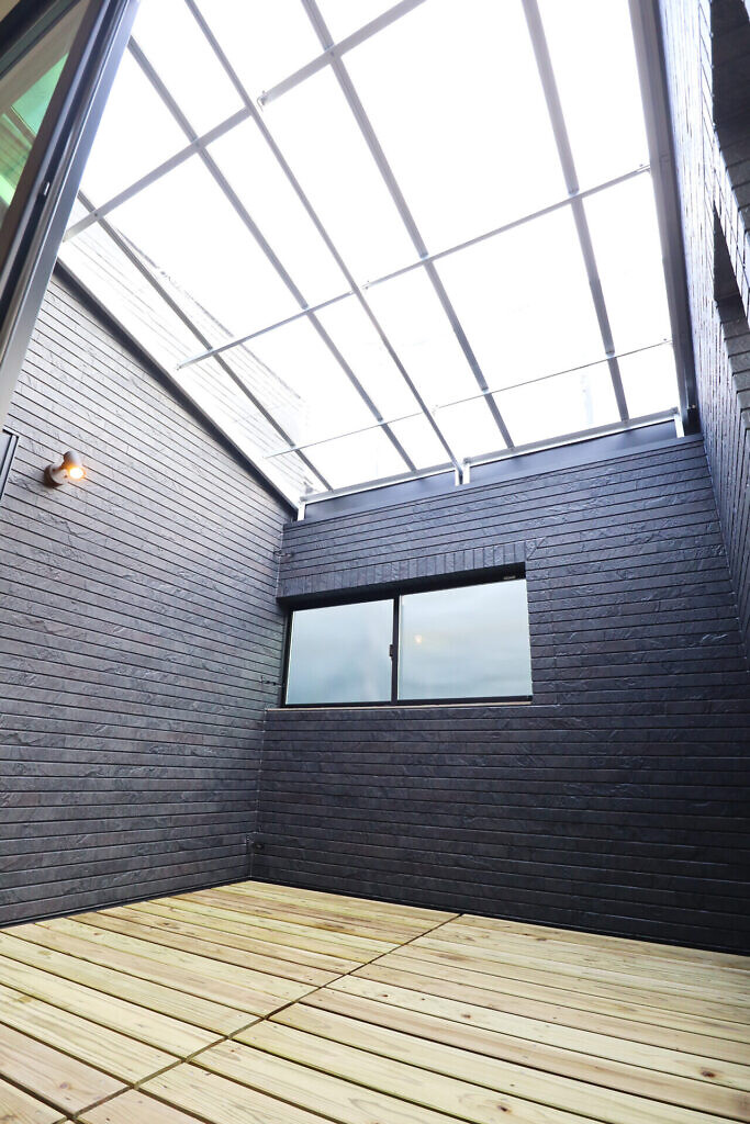 1. 2階ベランダはアウトインルームといってガラス屋根のある外と中の中間空間です