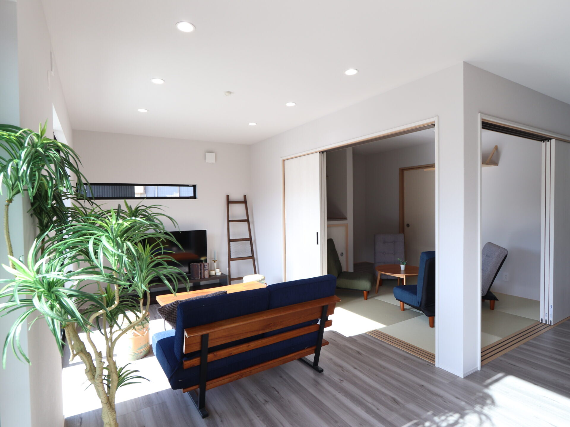 【リビング】建具で仕切られた和室は扉を開ければ一体感のある広いリビングになります。日当たりが良く奥まで明るい空間になりました。