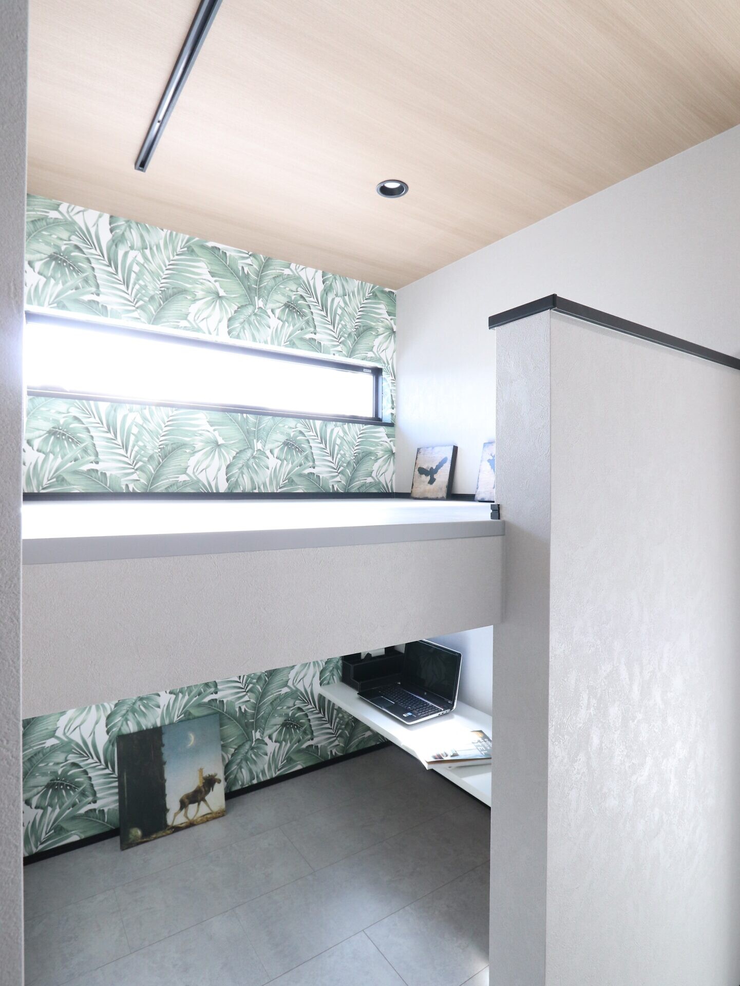 2段に造作した趣味部屋はお子さんの遊び場にもなりそうですね。マットを敷いてミニマリストのくつろぎ空間。