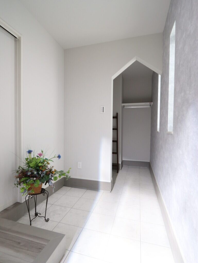 【玄関】奥行を設けて靴だけでなくベビーカーなどの外利用のある道具も余裕をもって置けるスペースにしました。