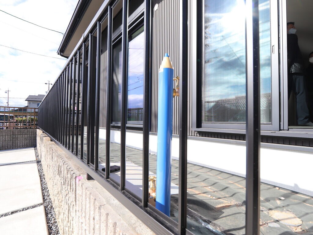 【水栓柱】お子さんが選んだ鉛筆型の立水栓です。芝を敷いたらワンちゃんのドッグランスペースが完成です。
