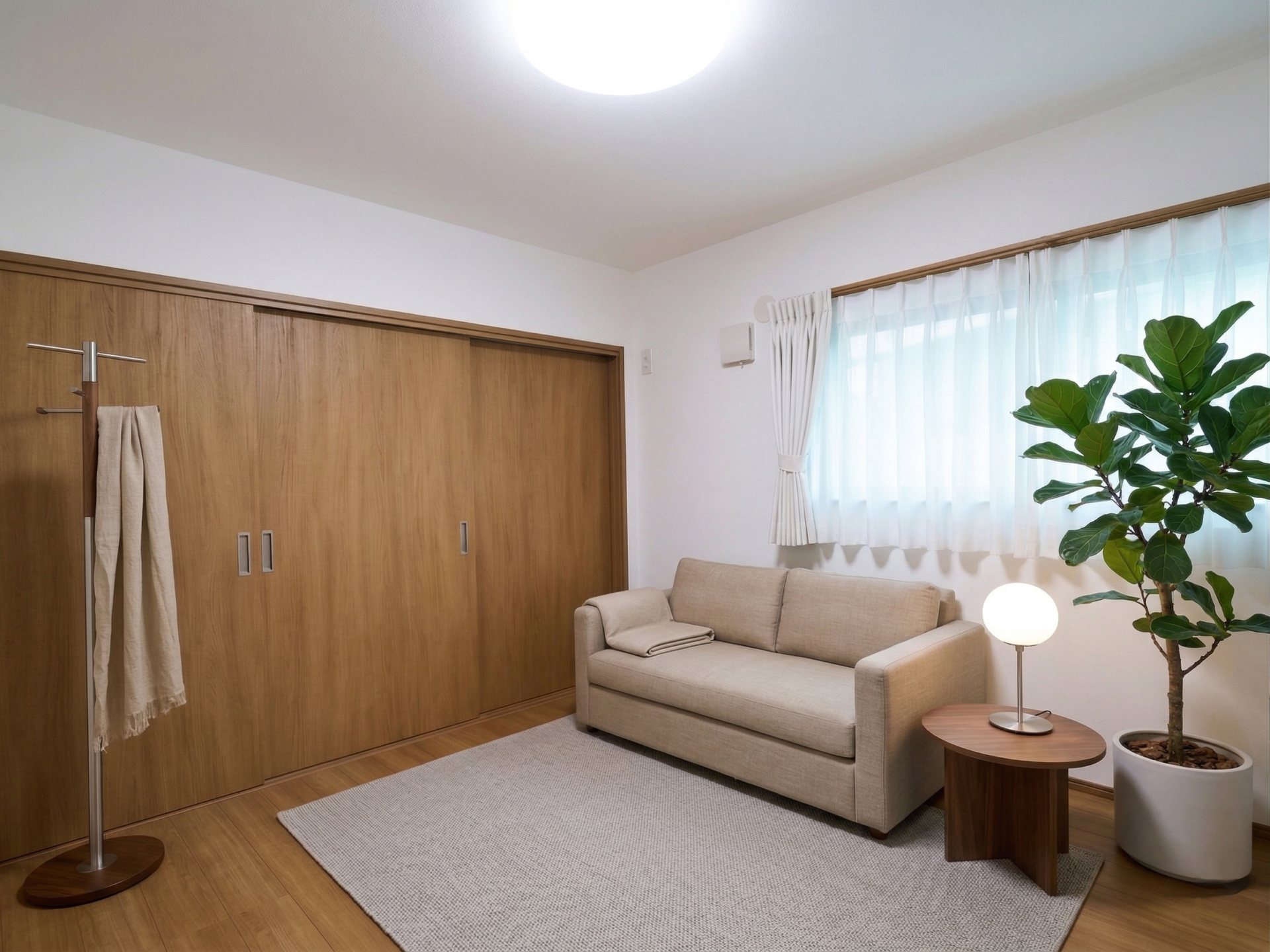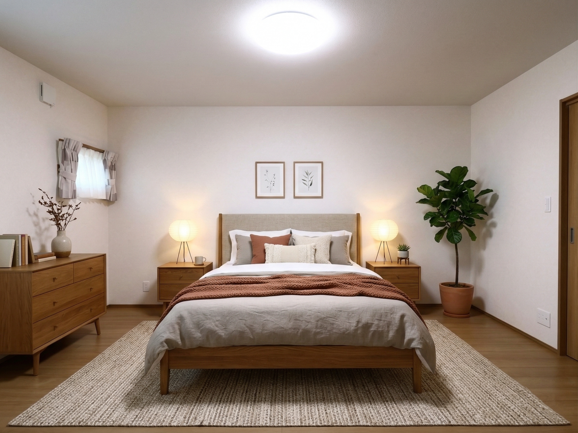 【主寝室】8帖ある主寝室は小さめの窓で落ち着いた空間に仕上げました。お手持ちのチェストやタンスを置いても充分な広さです。