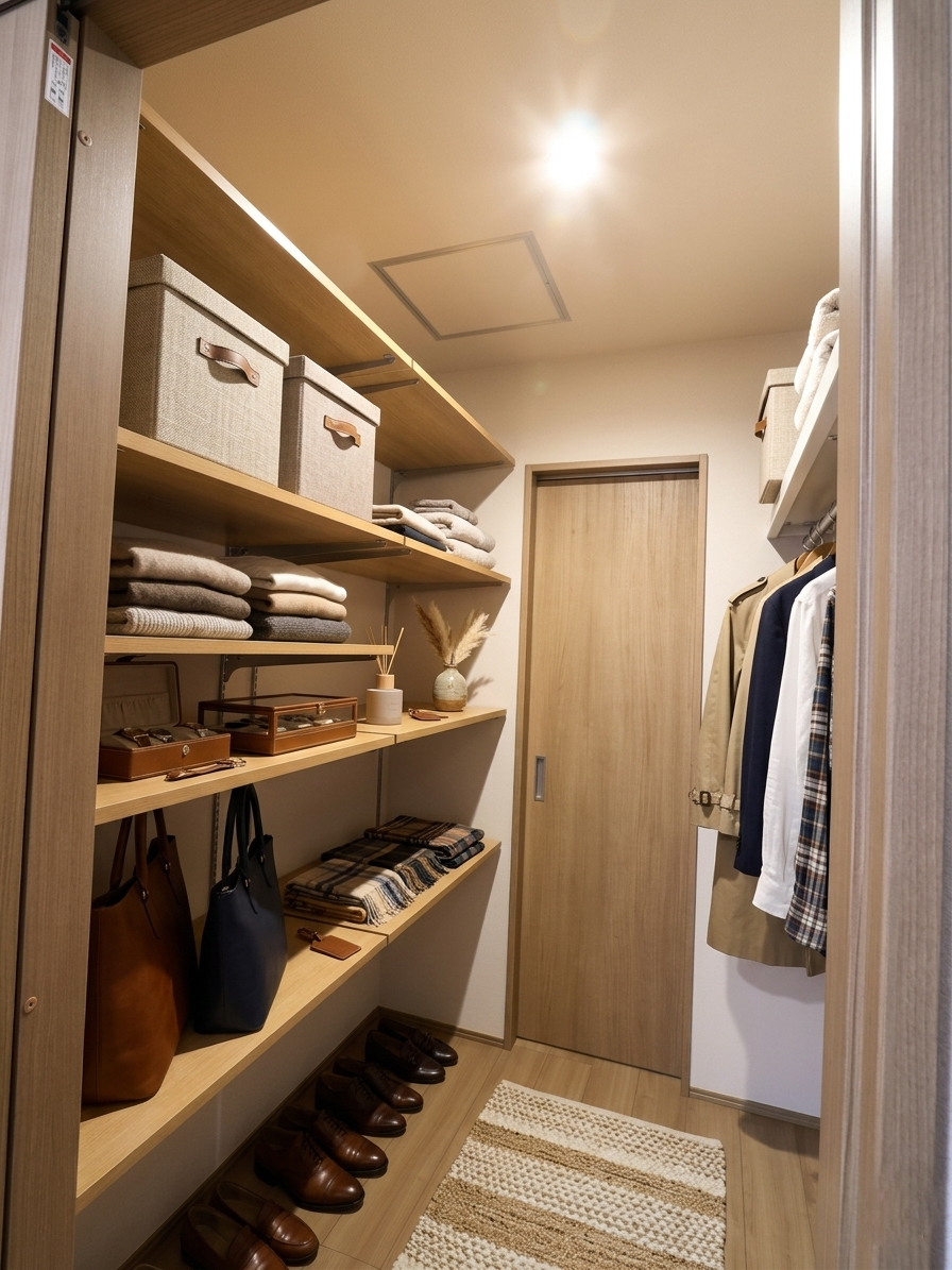 【WIC】部屋からも廊下からも入れるウォークインクローゼットは洗濯場所からも近くて少しの移動で収納できるようになっております。